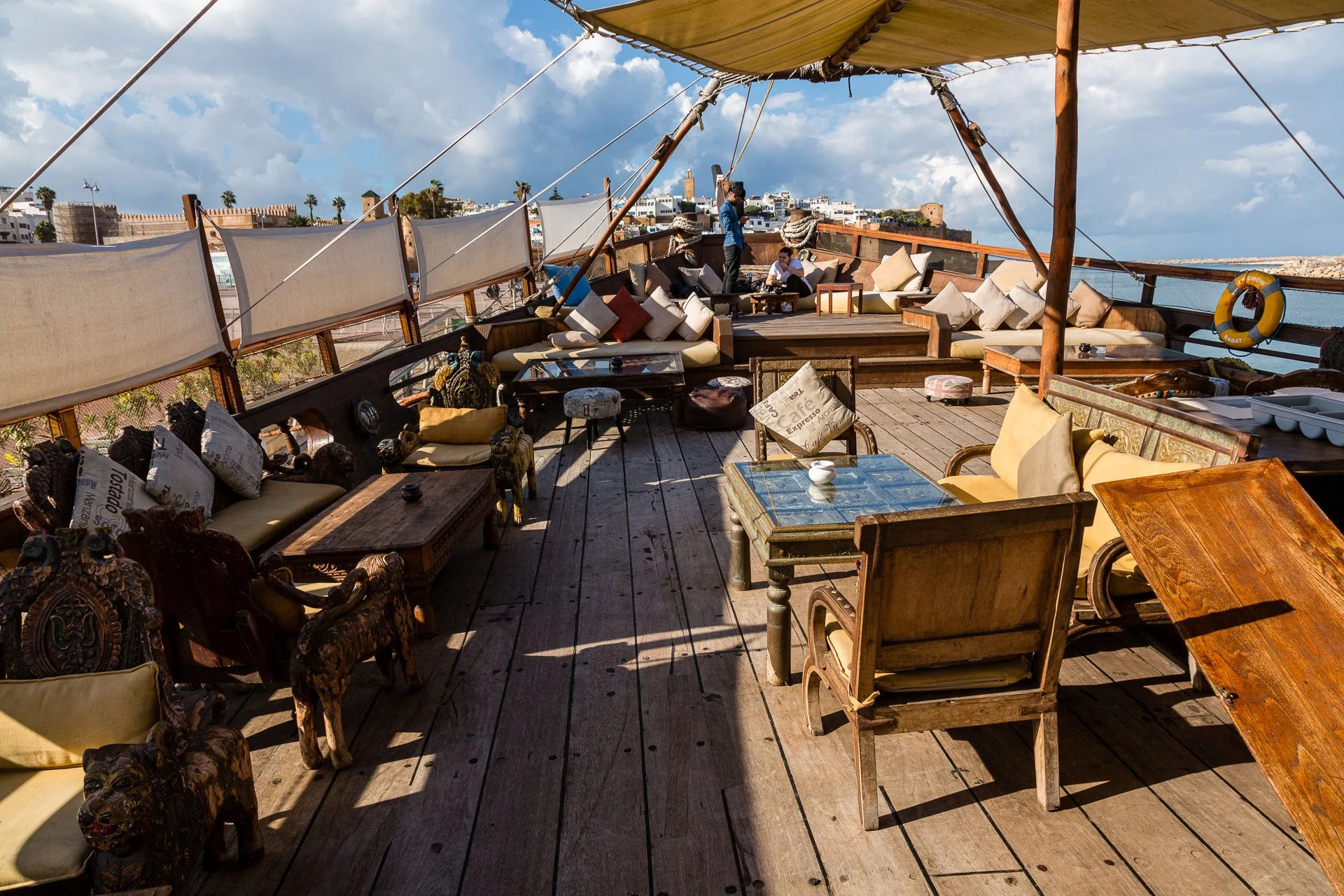 We walked back down the hill and has a drink in an old ship, called the Le Dhow which had been converted to a cafe restaurant. It was a bit twee, but still fun. The weather was good, and a cold beer went down nicely.