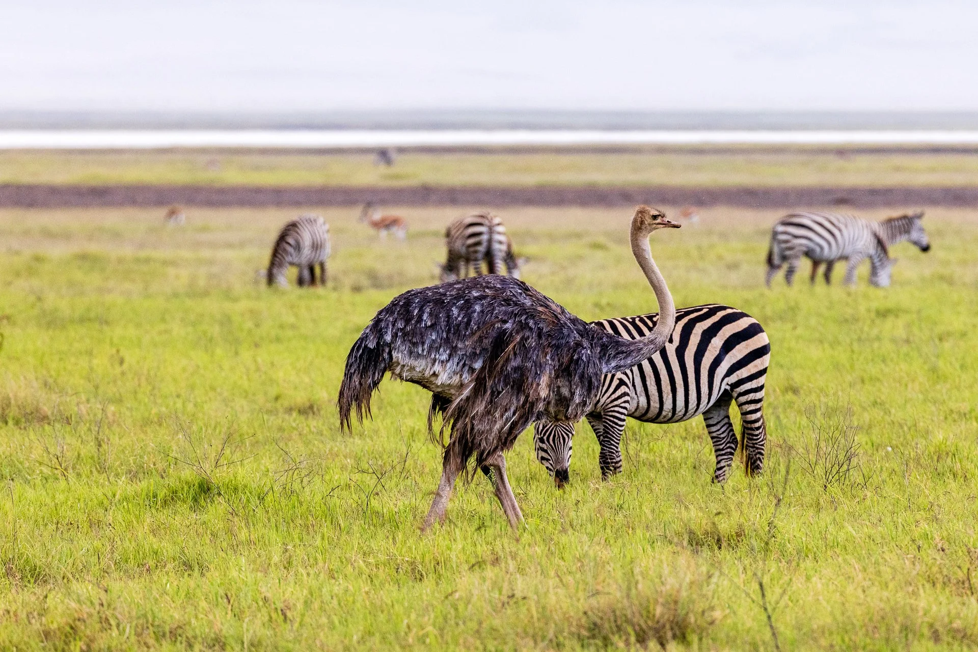 We reached the Ngorongoro Crater before lunchtime, winding our way down the switchback roads that lead from the Caldera to the basin. Trees line the road with flashes of plains as you catch glimpses into the crater. One of our main focuses as passengers was looking out for the final animal of the Big Five, the Rhino. And very quickly one was spotted, far in the distance. Even with my zoom and huge sensor, the Rhino’s remained small grey dots.