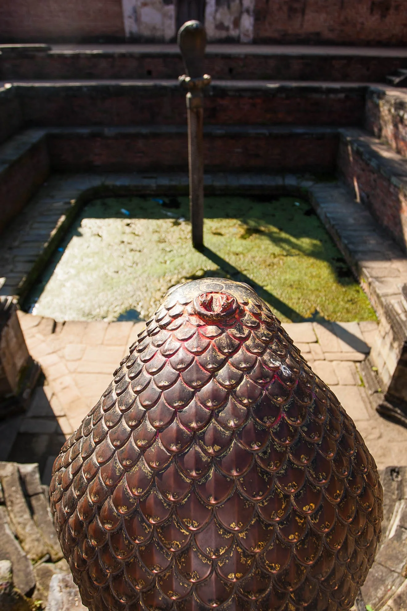 Through the gate we saw a Hindu temple, guarded by an armed soldier, that banned photography and the “Kings Pool”, where Nepalese kings of old would come to bathe. We assume that it was cleaned more regularly when there was a King to enjoy it.