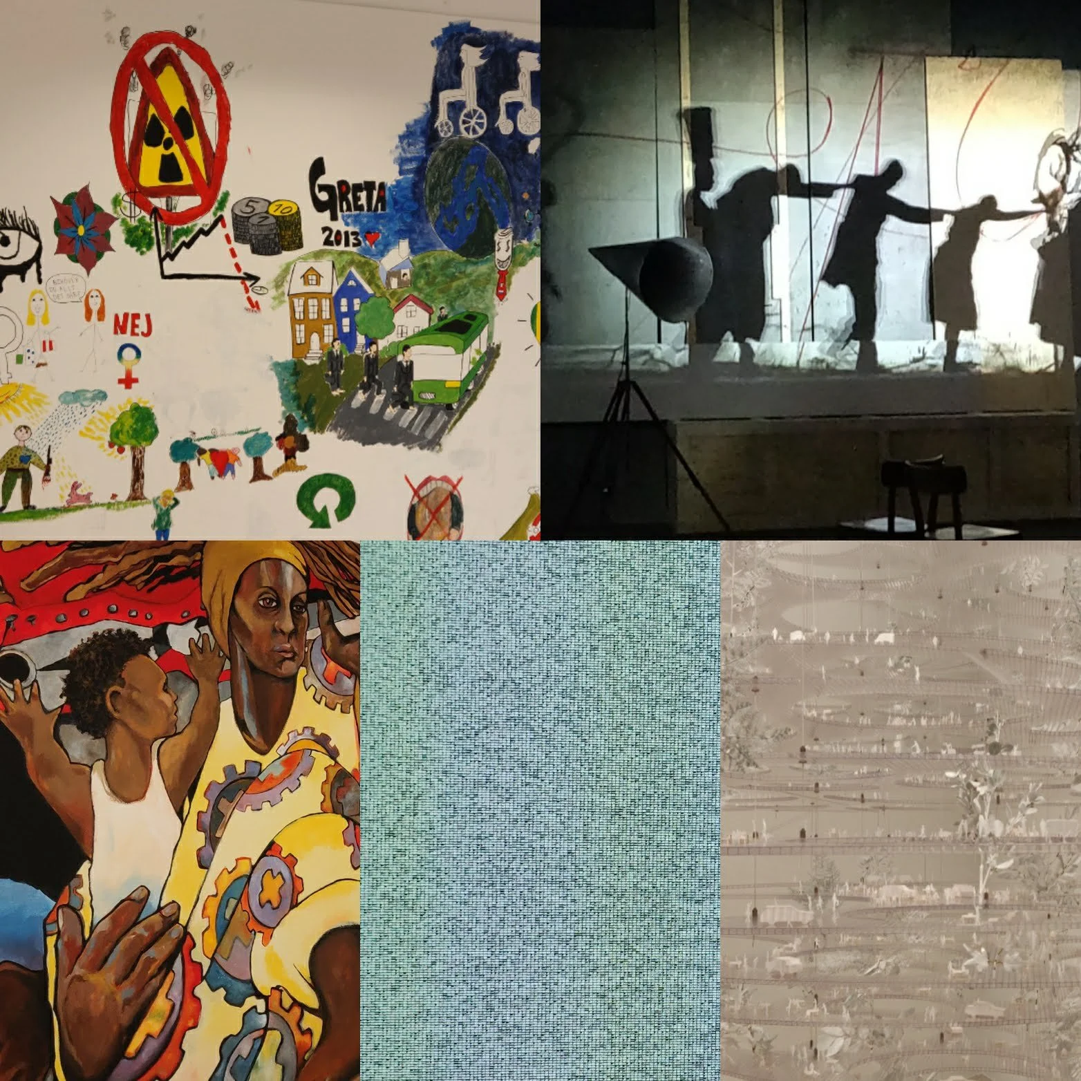 Further down, an African mosaic and a sound driven experience with a mechanical ‘heart’ in the centre and projections all around exploring the passage of time. The first floor was a creative space, where people could paint their own mural inspired by the professional one above.