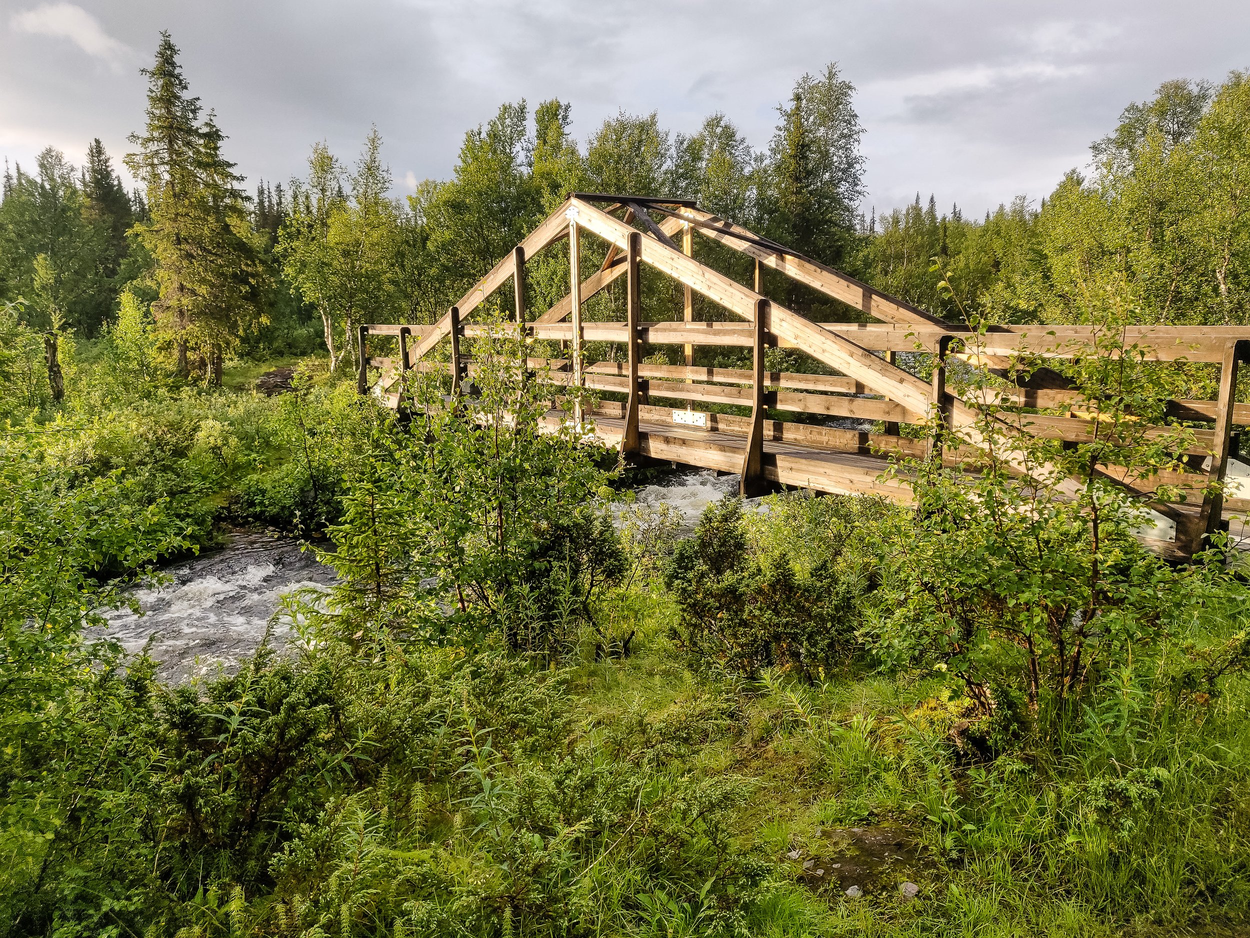 Walking along lake edges for much of this section, Pårtestugan to Kvikkjokk is a fairly easy hike through forests, and there is even Dáhtá beach to relax on if you choose to. It is mostly through humid forests with some really nice bridges over the numerous waterways, its an easy trail into Kvikkjokk.