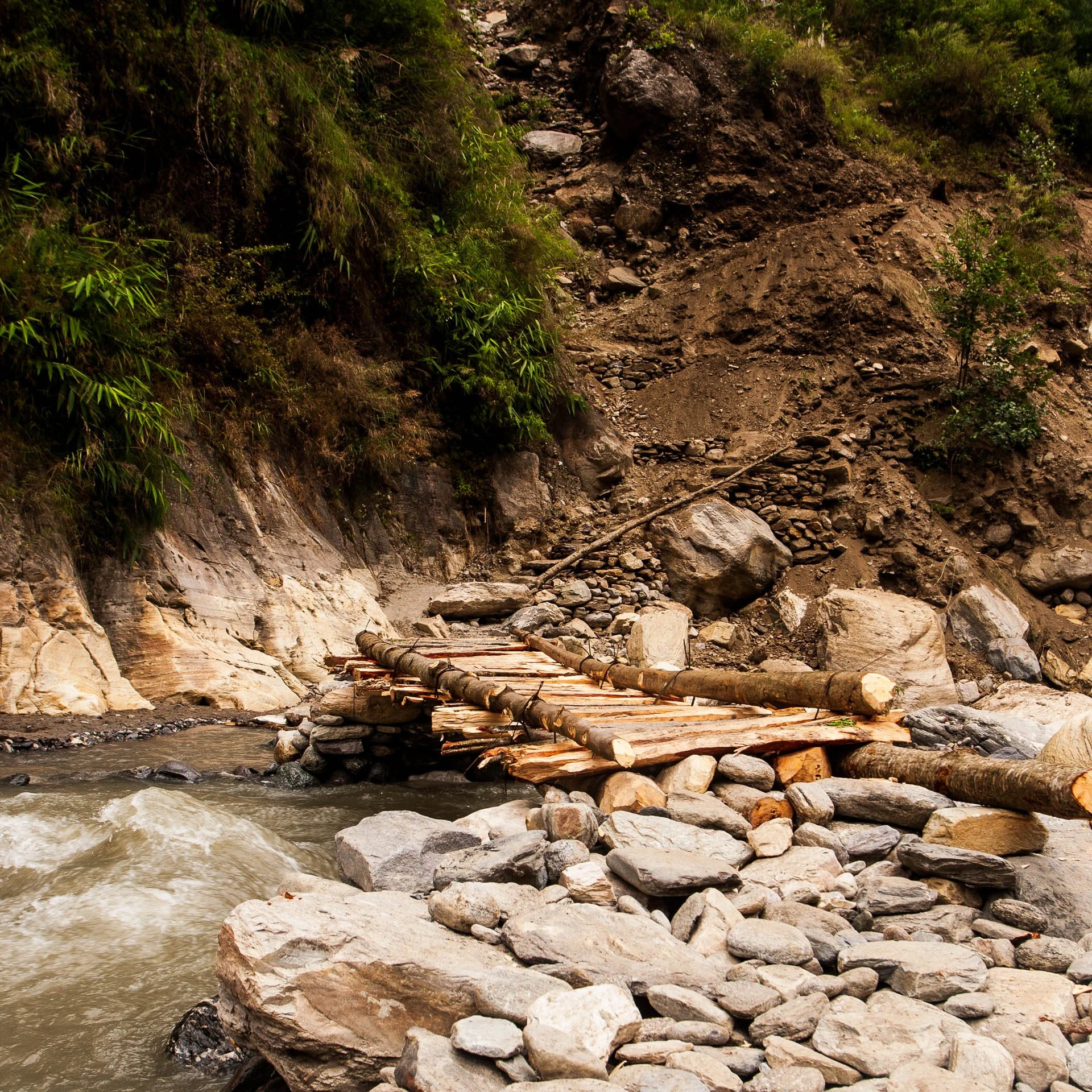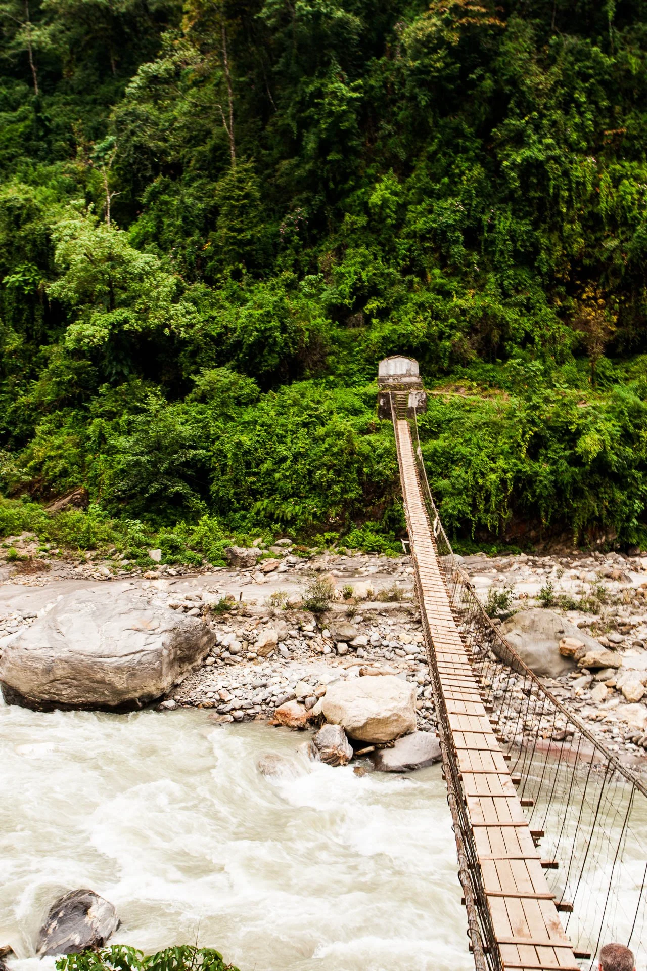 The bridge had been finished that very day, the original having been swept away by the high tides of monsoon season. We had an awkward climb down to it, as no proper path had been forged, but once that was done it was back to climbing.