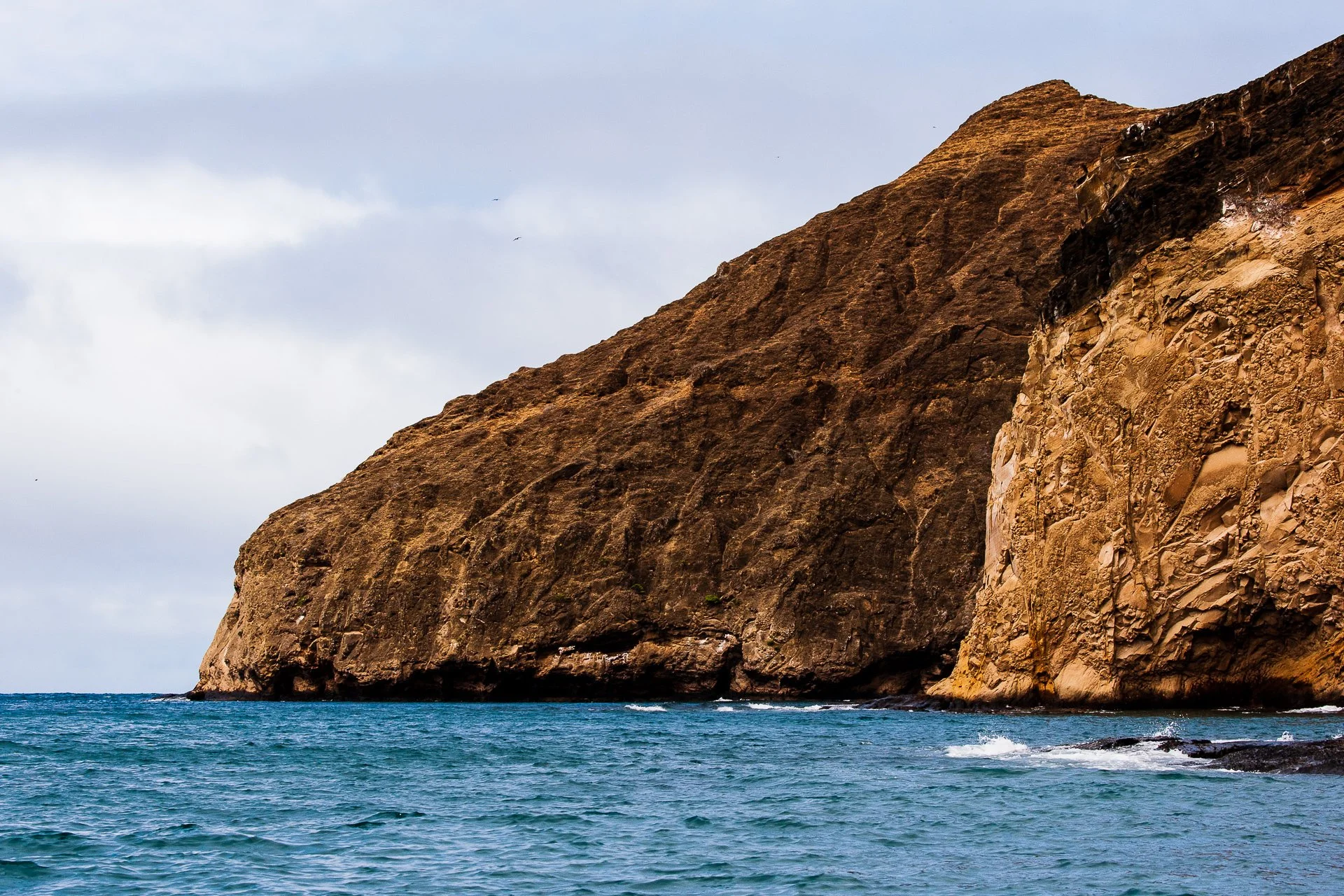 Kicker Rock itself rises out of the water, with sheer sides and a distinctive shape, dominating what you can see. It looms, magnificent and memorable. It is an eroded cone of volcanic tuff (ash) standing in the middle of the ocean.
