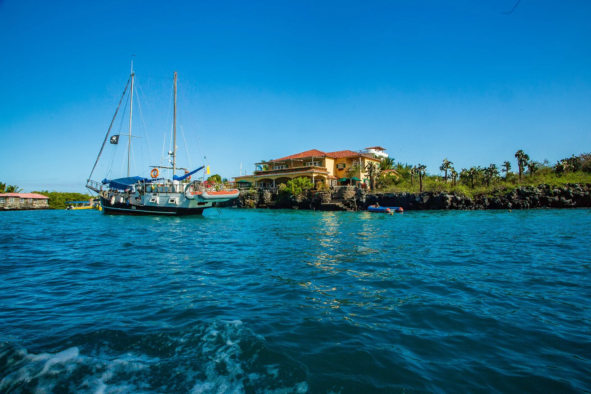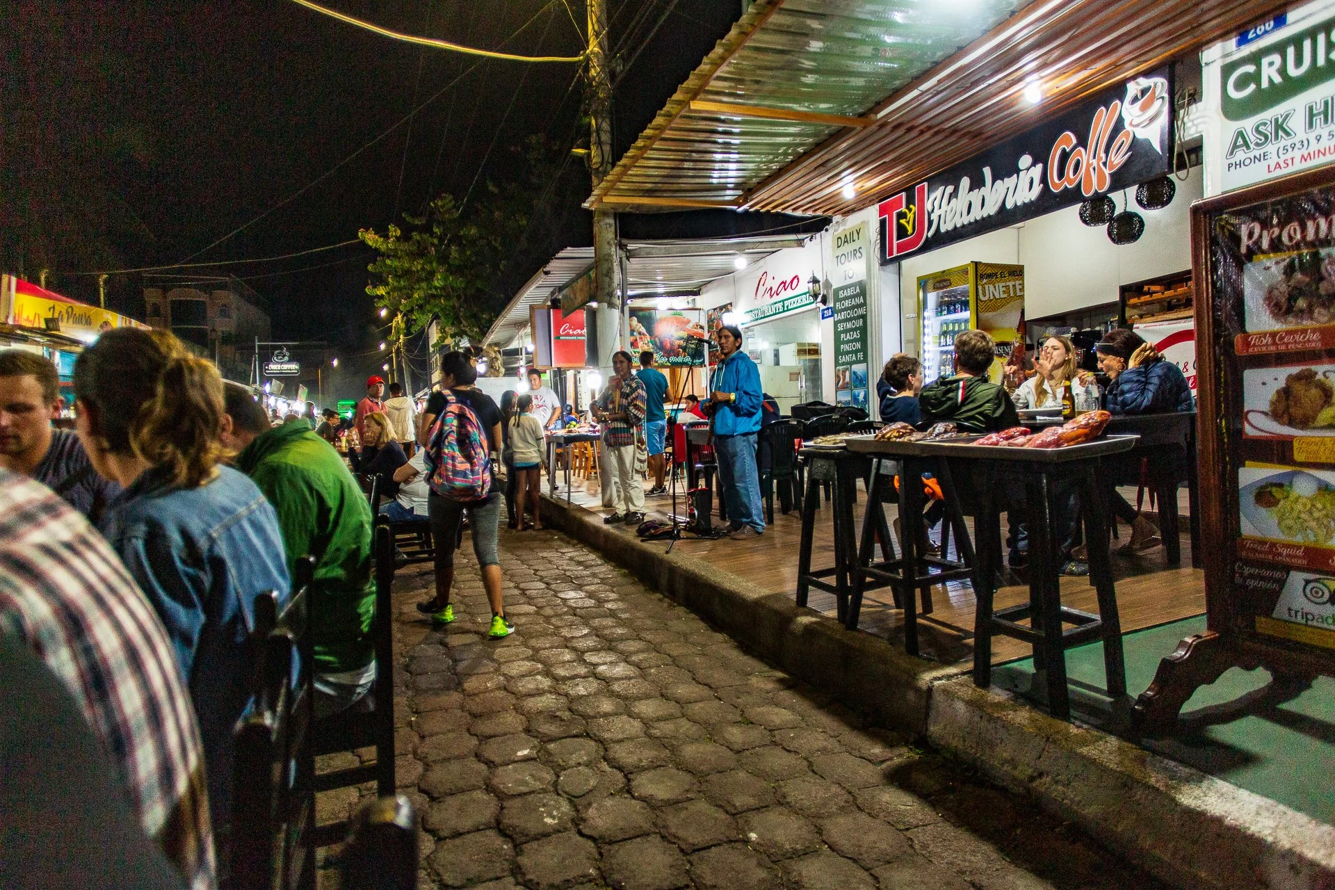 Puerto Ayora is Santa Cruz's largest town and the main port and on the southern end of the island. The airport is on the far north, on its own small island that you need to take a boat across to, with your bags loaded up on the roof. It is comparatively vibrant for a Galapagos town, with some restaurants and bars, some running till very late in the morning.